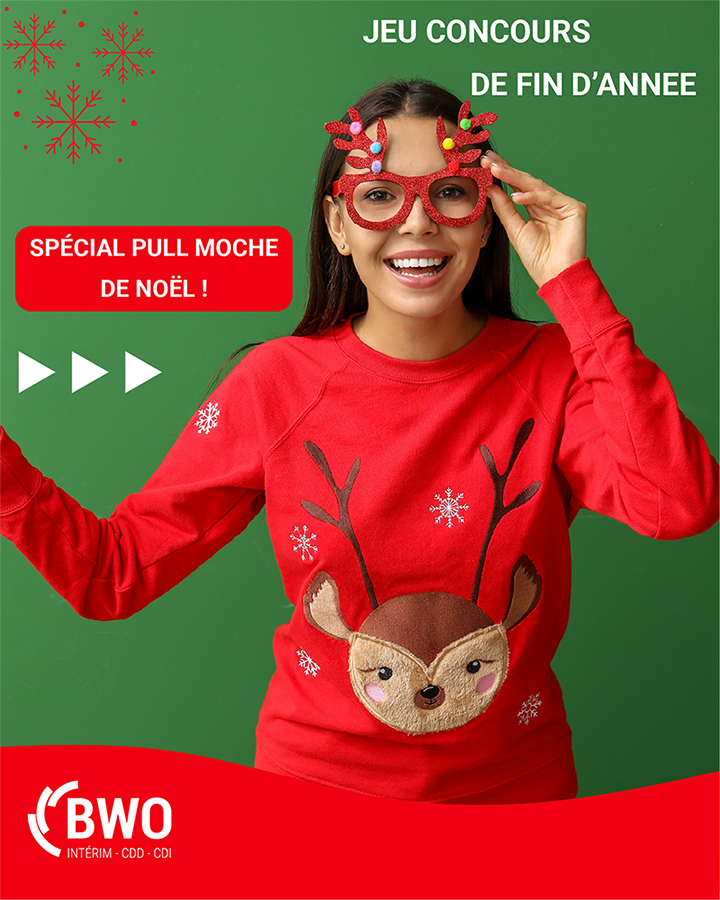 📸 Prenez-vous en photo avec votre plus beau… ou plutôt votre plus MOCHE pull de Noël, directement sur votre poste de travail ! (cellule, open space, télétravail, atelier… tout est accepté du moment qu’on voit l’ambiance “au boulot”)